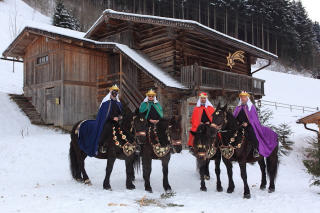 Hl. 3 Könige hoch zu Roß vor dem ehemaligen Pfarrstall, heute Werkstatt des Krippenbauvereines