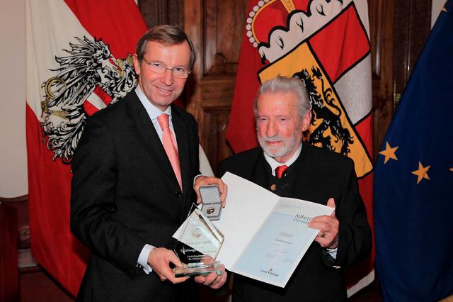 Wolfram Paulus (sen.) und Landeshauptmann-Stv. Dr. Wilfried Haslauer bei der Übergabe des Ehrenzeichens